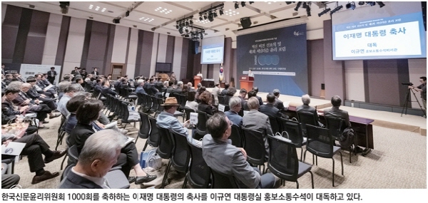 ÀÌÀç¸í ´ëÅë·ÉÀº 9¿ù 18ÀÏ Çѱ¹ÇÁ·¹½º¼¾ÅÍ ±¹Á¦È¸ÀÇÀå¿¡¼ ¿¸° Çѱ¹½Å¹®À±¸®À§¿øÈ¸ 1000ȸ ±â³ä ¹× Çõ½Å ºñÀü ¼±Æ÷½Ä¿¡¼ ¡°¾ð·ÐÀº ¿ì¸® »çȸÀÇ ºû°ú ¼Ò±ÝÀÌ¸ç ±¹¹ÎÀÇ ¾ÈÀüÀ» Áö۰í Èñ¸ÁÀ» ÀüÇÏ´Â µ¥ ÇÙ½ÉÀûÀÎ ¿ªÇÒÀ» ¼ö ÇàÇØ ÁÖ±æ ±â´ëÇÑ´Ù¡±°í ¹àÇû´Ù.