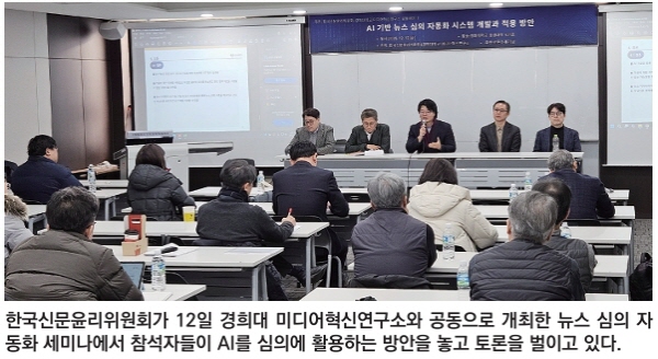 Çѱ¹½Å¹®À±¸®À§¿øÈ¸¿Í °æÈñ´ë ¹Ìµð¾îÇõ½Å¿¬±¸¼Ò(¼ÒÀå ÀÌ»ó¿ø °æÈñ´ë ¹Ìµð¾îÇаú ±³¼ö)´Â 12ÀÏ ¿ÀÀü 10½Ã 30ºÐ °æÈñ´ë Á¤°æ´ëÇÐ 401È£ °Àǽǿ¡¼ ¡®´º½º ½ÉÀÇ ÀÚµ¿È¡¯ ¼¼¹Ì³ª¸¦ °øµ¿À¸·Î °³ÃÖÇß´Ù. <°ü·Ã±â»ç 4¸é>