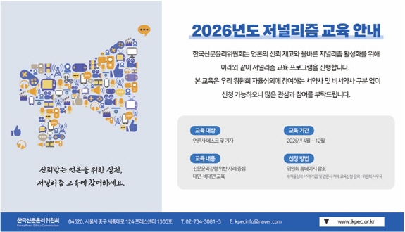 Çѱ¹½Å¹®À±¸®À§¿øÈ¸´Â ¾ð·ÐÀÇ ½Å·Ú Á¦°í¿Í ¿Ã¹Ù¸¥ Àú³Î¸®Áò Ȱ¼ºÈ¸¦ À§ÇØ Àú³Î¸®Áò ±³À° ÇÁ·Î±×·¥À» ÁøÇàÇÕ´Ï´Ù.
